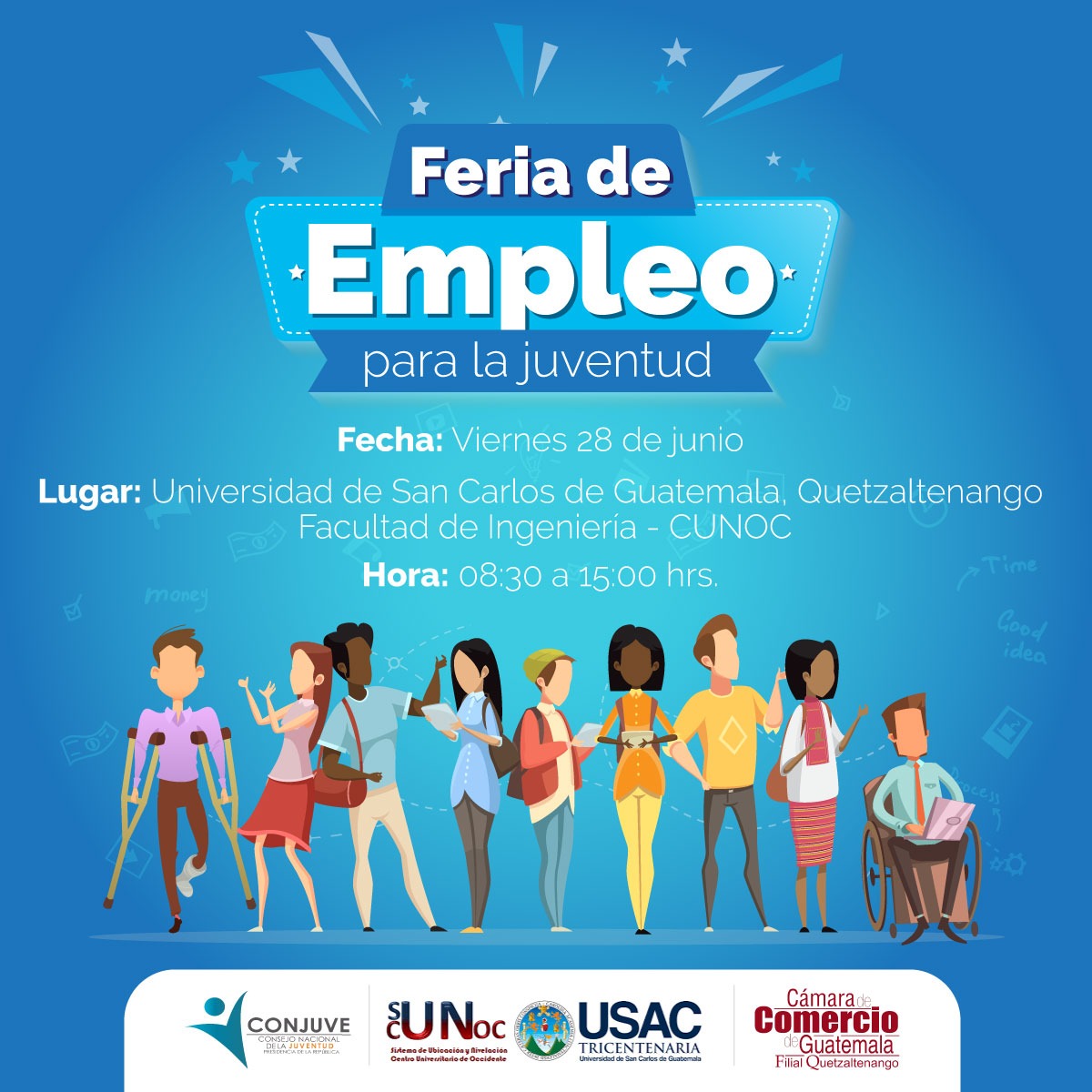 Por. J.C. |Sociales |En la ciudad de Quetzaltenango, el día viernes 28 de junio, en las instalaciones de la facultad de Ingeniería, del Centro Universitario de Occidente de la universidad de San Carlos, se realizará la feria de empleo para la juventud, dónde diversas instituciones dispondrán de plazas de trabajo, específicamente para jóvenes recién graduados.