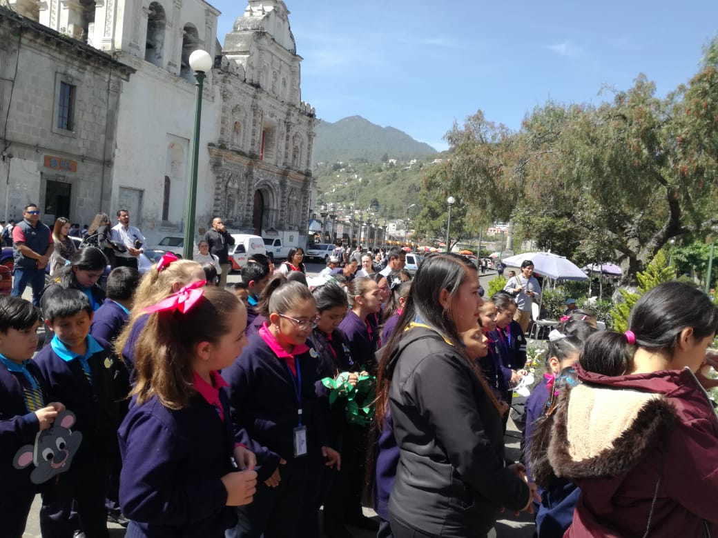Luego con el canto del Himno Nacional de Guatemala, y, la Luna de Xelajú cantado por medio de lenguaje de señas por estudiantes del Colegio Beehive School se vivió otro punto más, dentro del acto cívico.