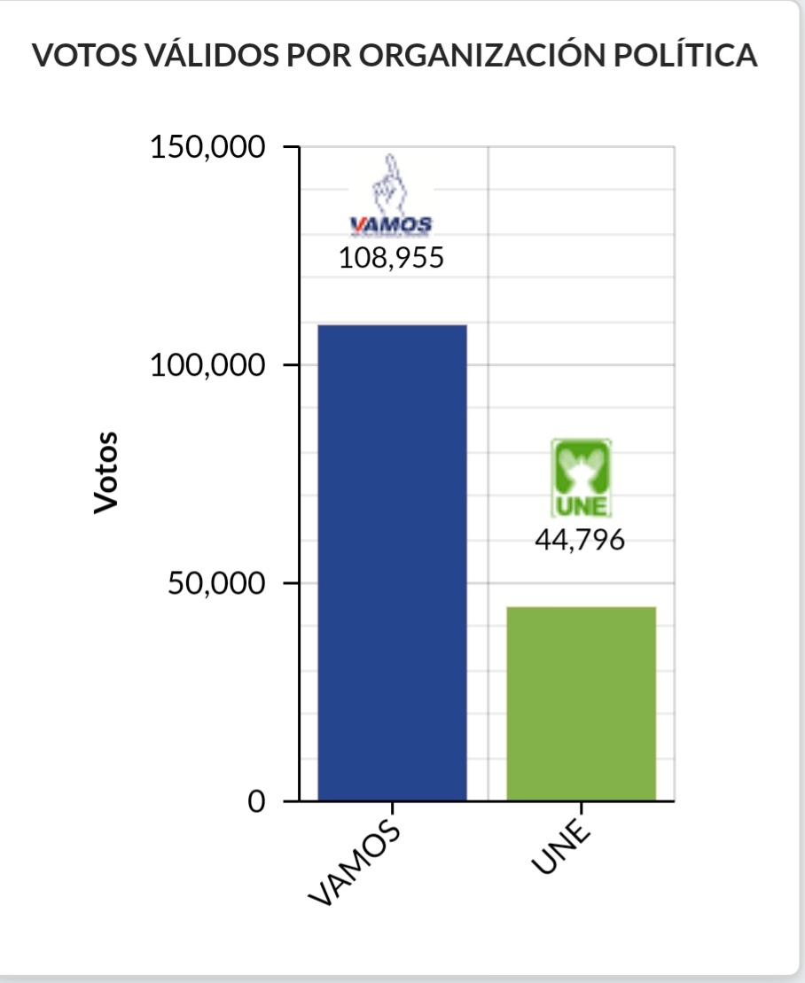 Resultados preliminares segunda vuelta electoral, en Quetzaltenango.