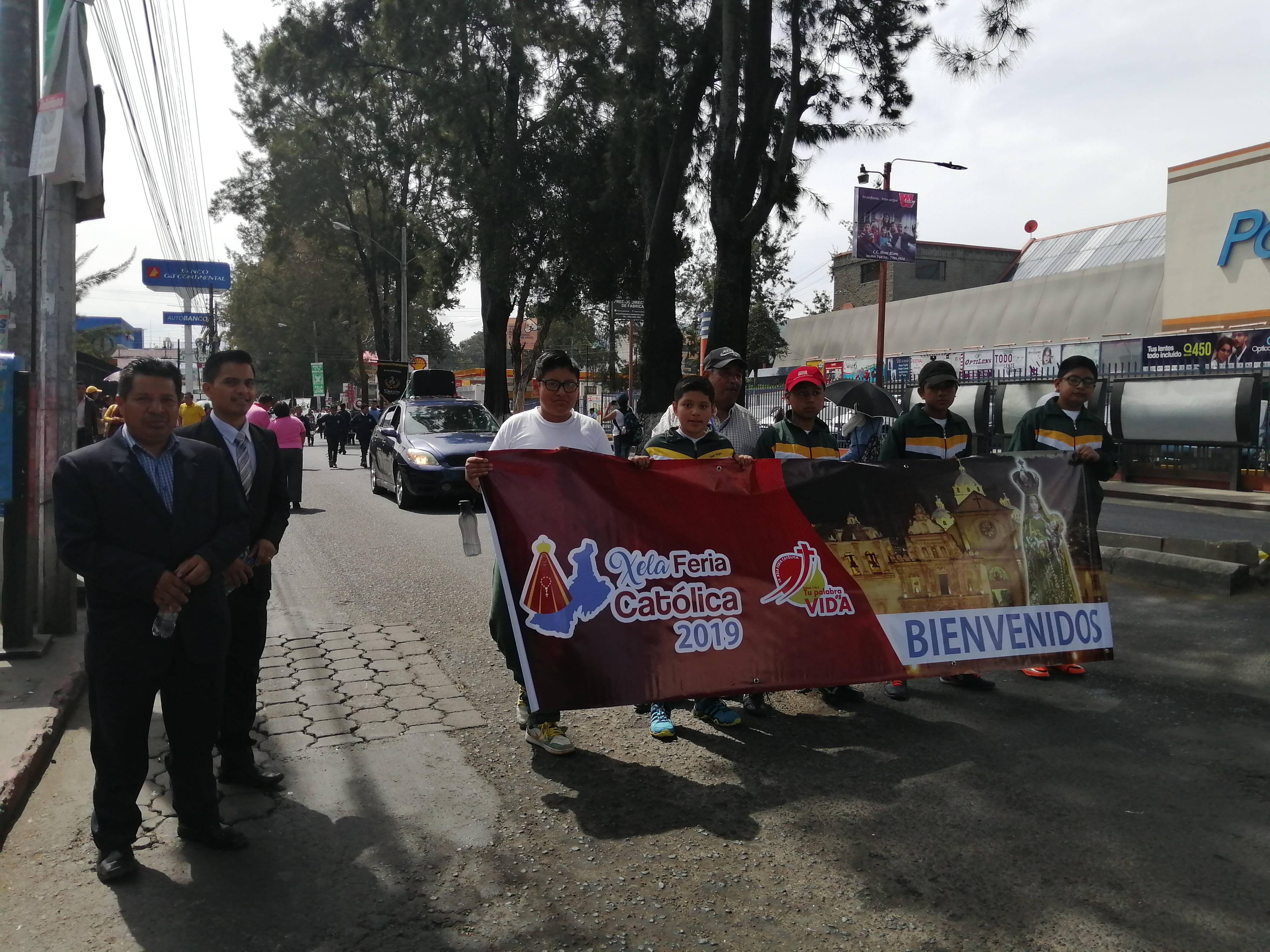 Con la realización de un desfile donde han participado estudiantes y bandas de diferentes establecimientos educativos, dan inicio las actividades de esta feria católica, que inicio frente a las instalaciones de la V compañía de bomberos voluntarios, recorrió la 14 av, de la primera hacia la cuarta calle de la zona 3, para luego dirigirse hacia la 19av, ingresando en el campo del centro intercultural. Durante el recorrido se fueron quemando cohetillos y las bandas ejecutando diversas melodías.