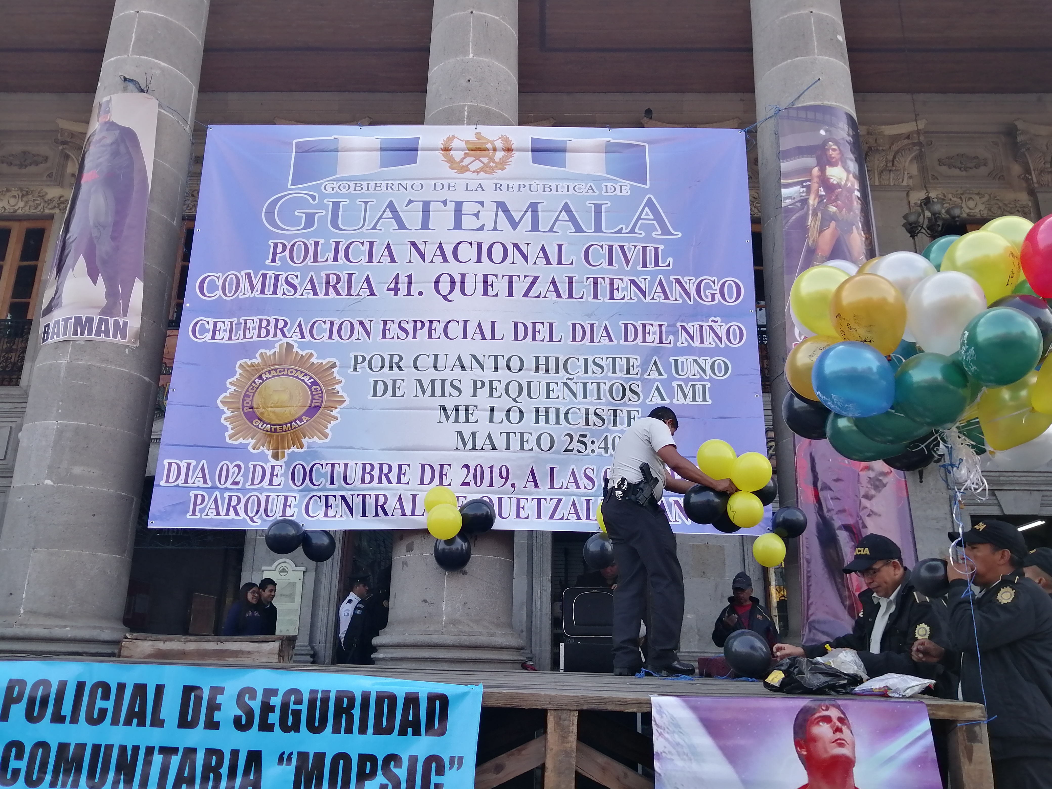 Por. J.C. |Sociales |Esta mañana en el frontispicio de la municipalidad de Quetzaltenango, agentes de la Comisaría 41 de la Policía Nacional Civil, celebró el día del niño, compartiendo con niños de escasos recursos, niños con capacidades diferentes, y niños hijos de oficiales caídos en el cumplimiento de su deber.