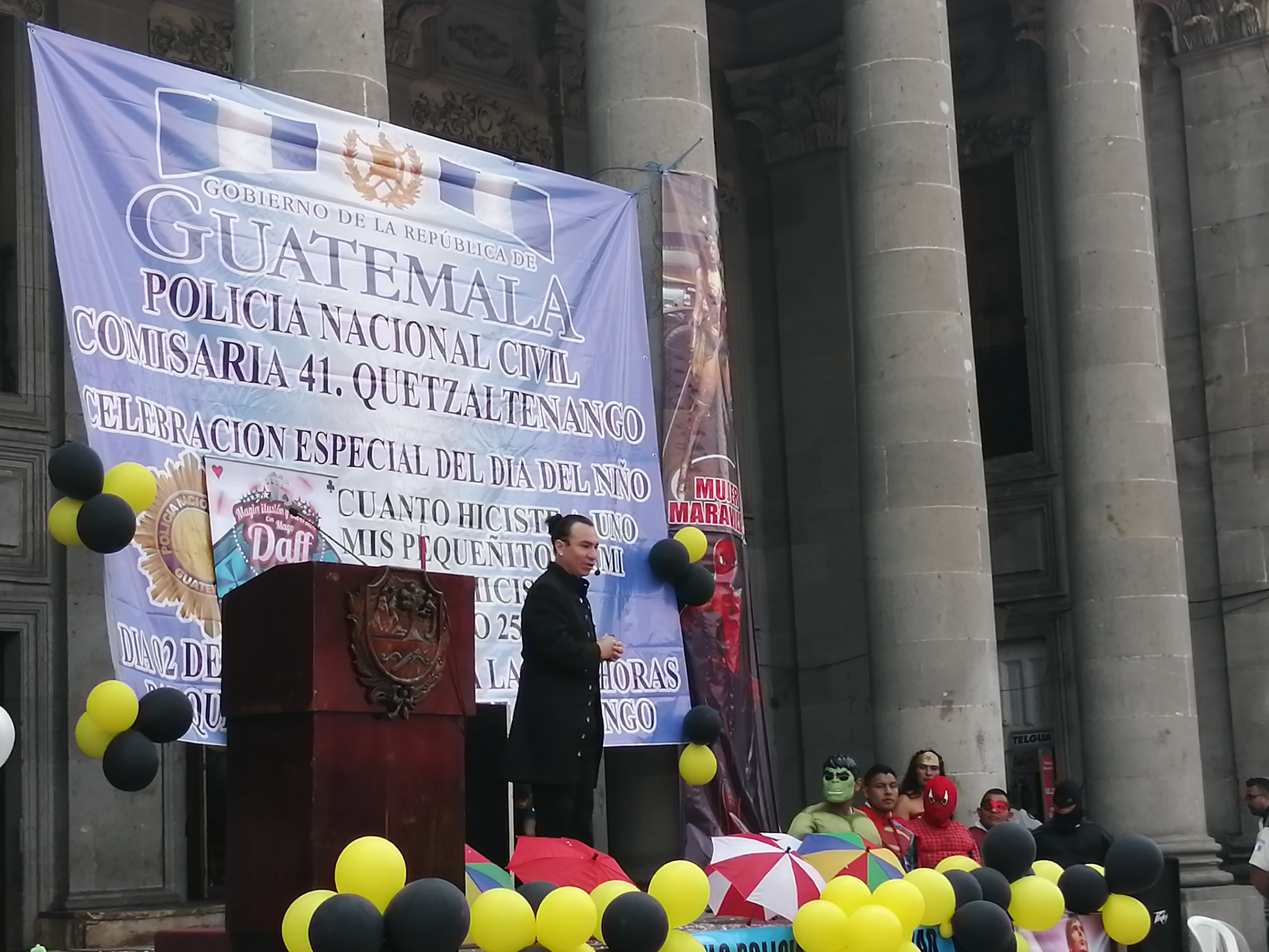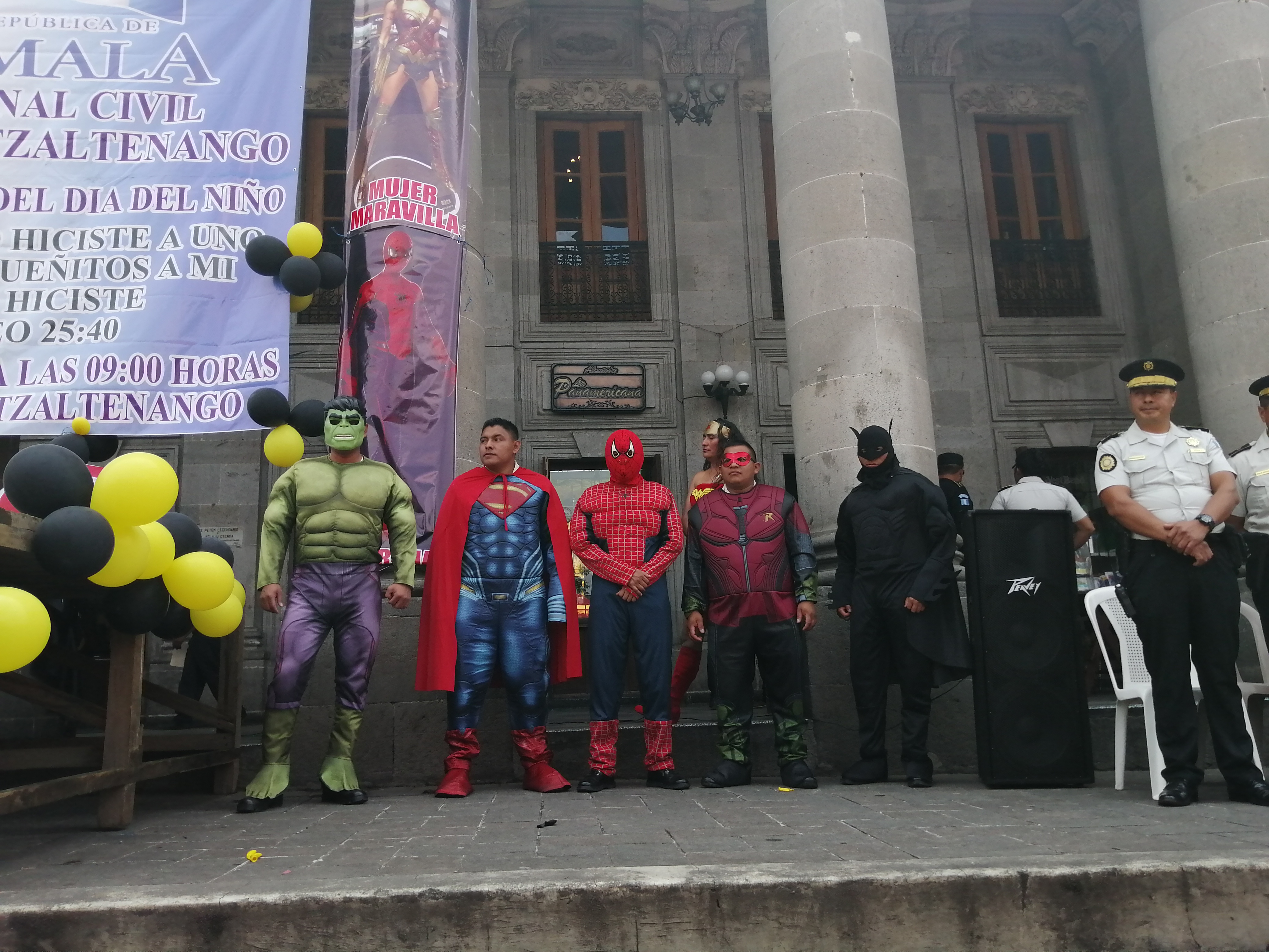 Con el ingreso de la bandera de Guatemala y de la Policía Nacional Civil, la participación de mago, super heroes que fueron llevados en el bus de ésta institución e ingresaron emotivamente por los aplausos y gestos de admiración de los niños presentes, payasita que realizó show ameno pues provocó sonrisas en los presentes, así como agentes de la policía nacional civil, especialmente de la sección de antinarcoticos que presentaron simulacro con la participación de un perro llamado Jango, simulando incautación de drogas, acto que hizo que los niños estuvieran atentos.