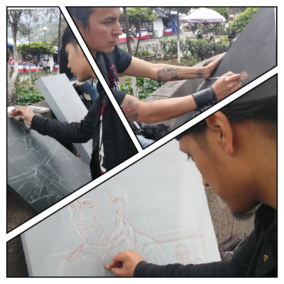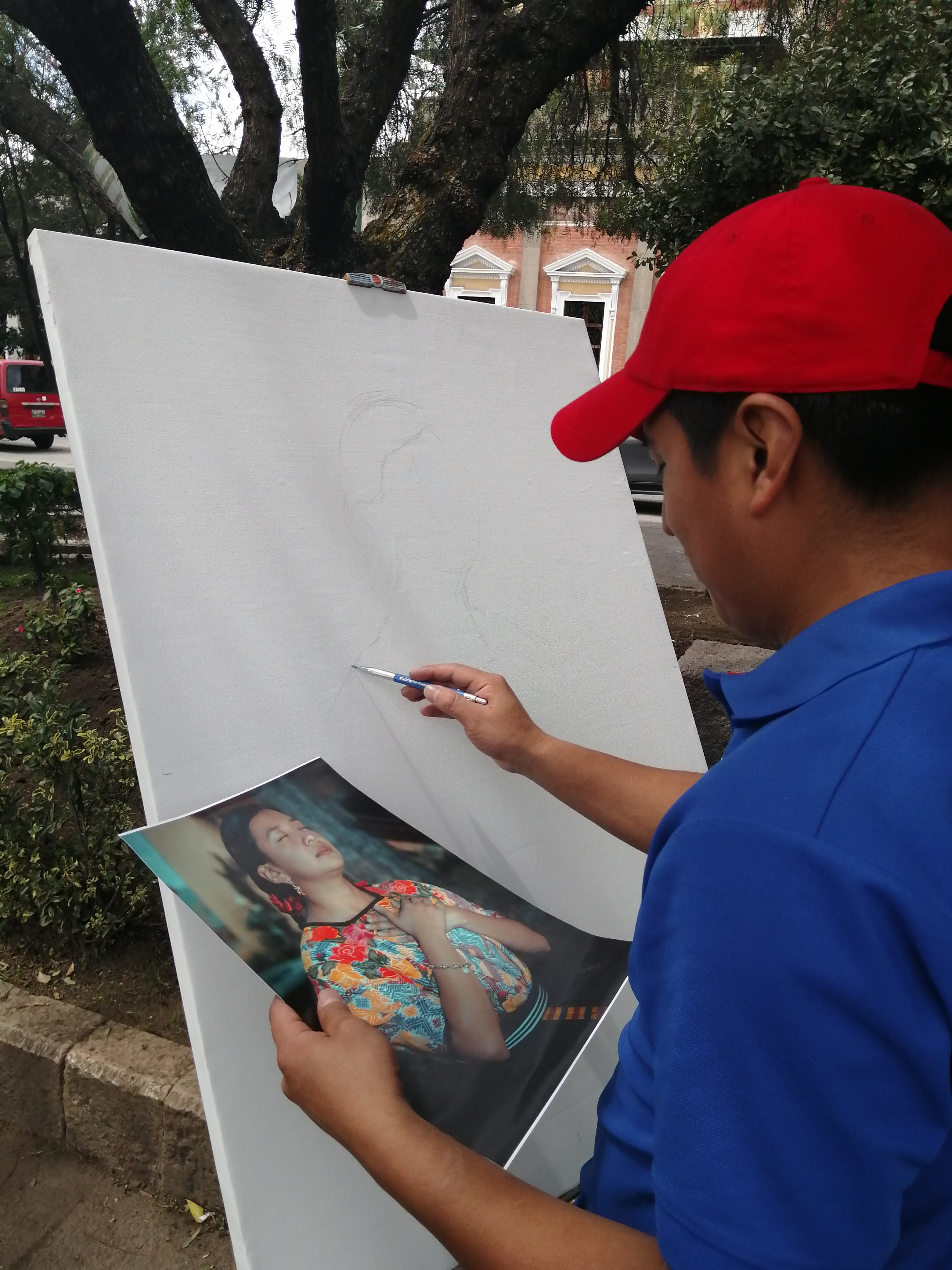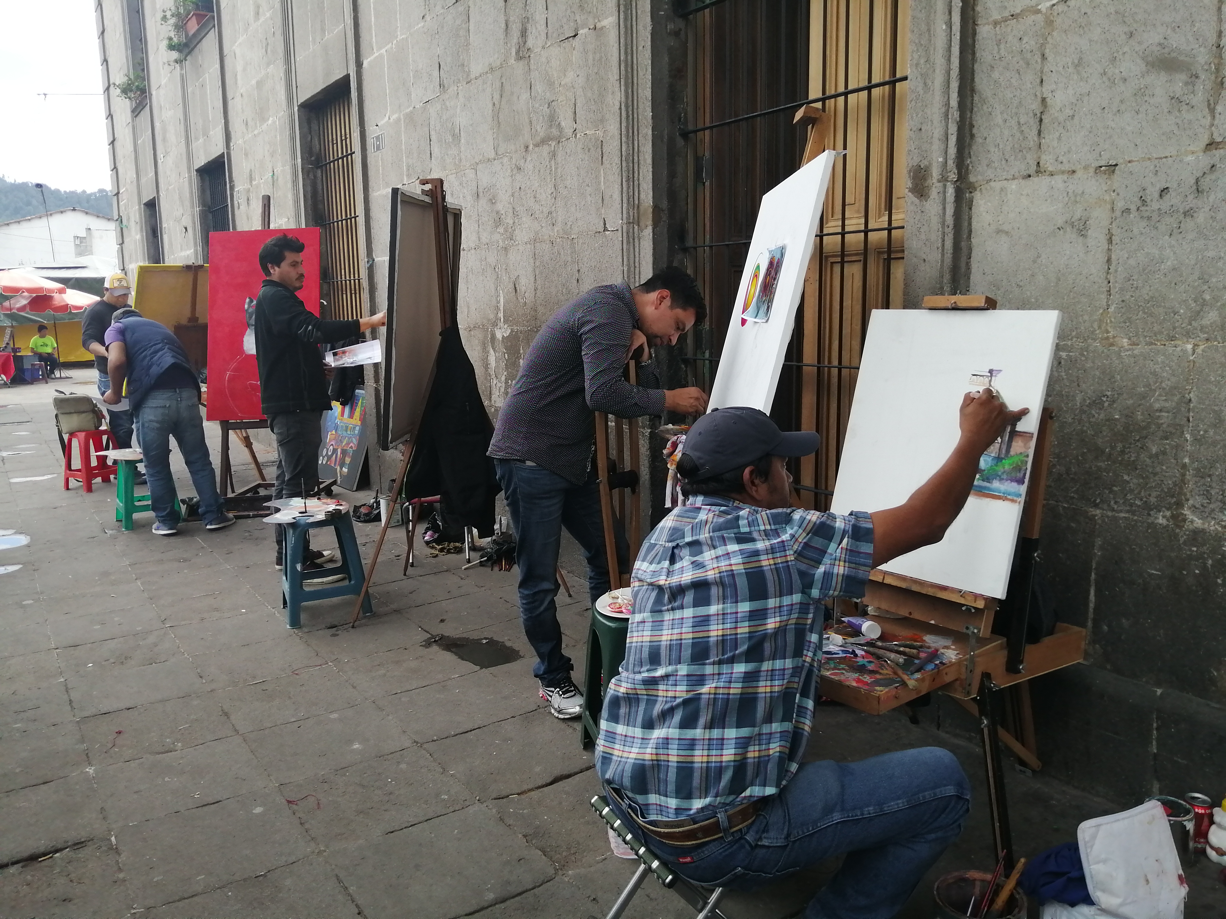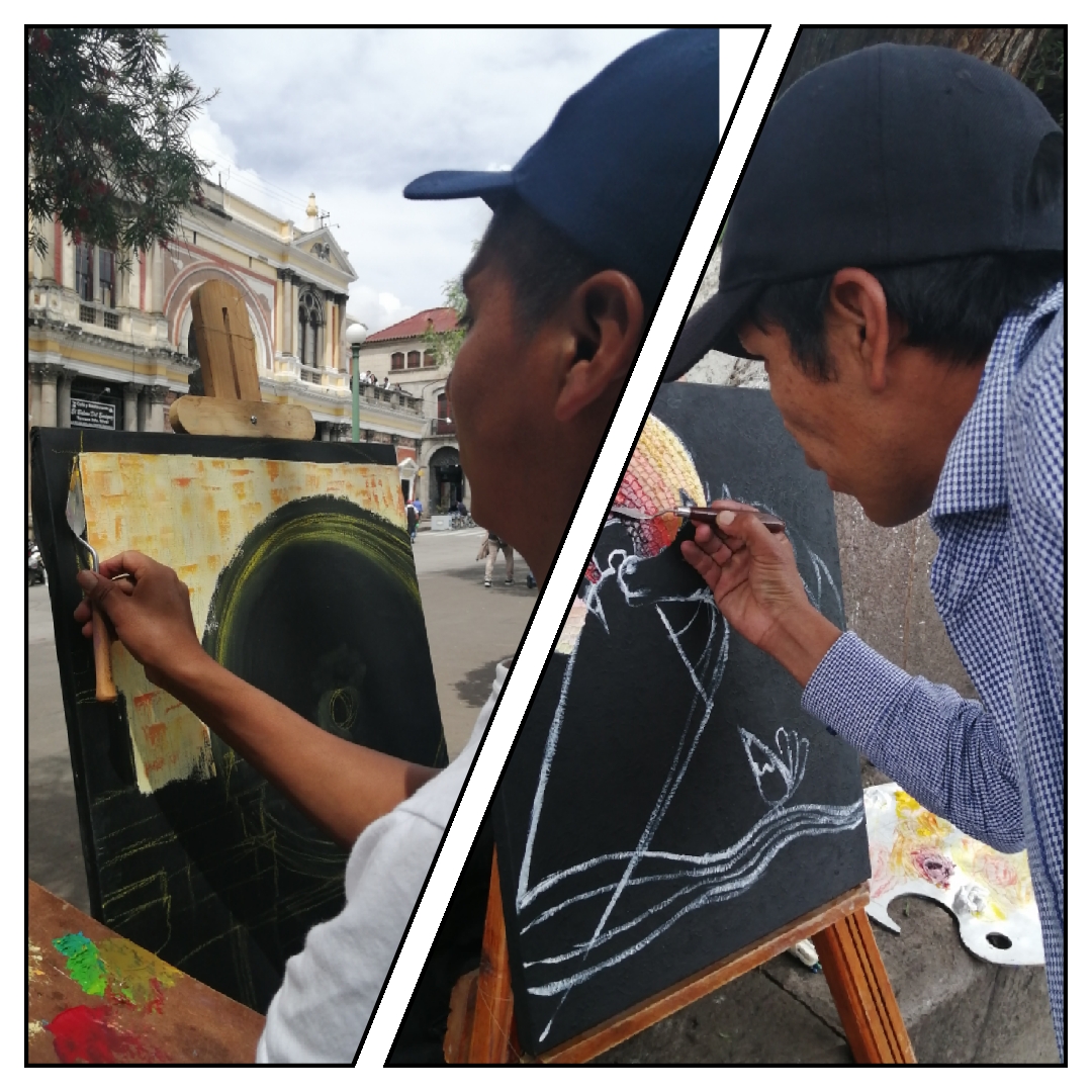 Antonio Ronaldo artista procedente del municipio de San Andrés Xecul, quien plasma su obra en acrílico, al igual que Yeiyson González del municipio de Olintepeque, y Antonio del municipio de Concepción Chiquirichapa.