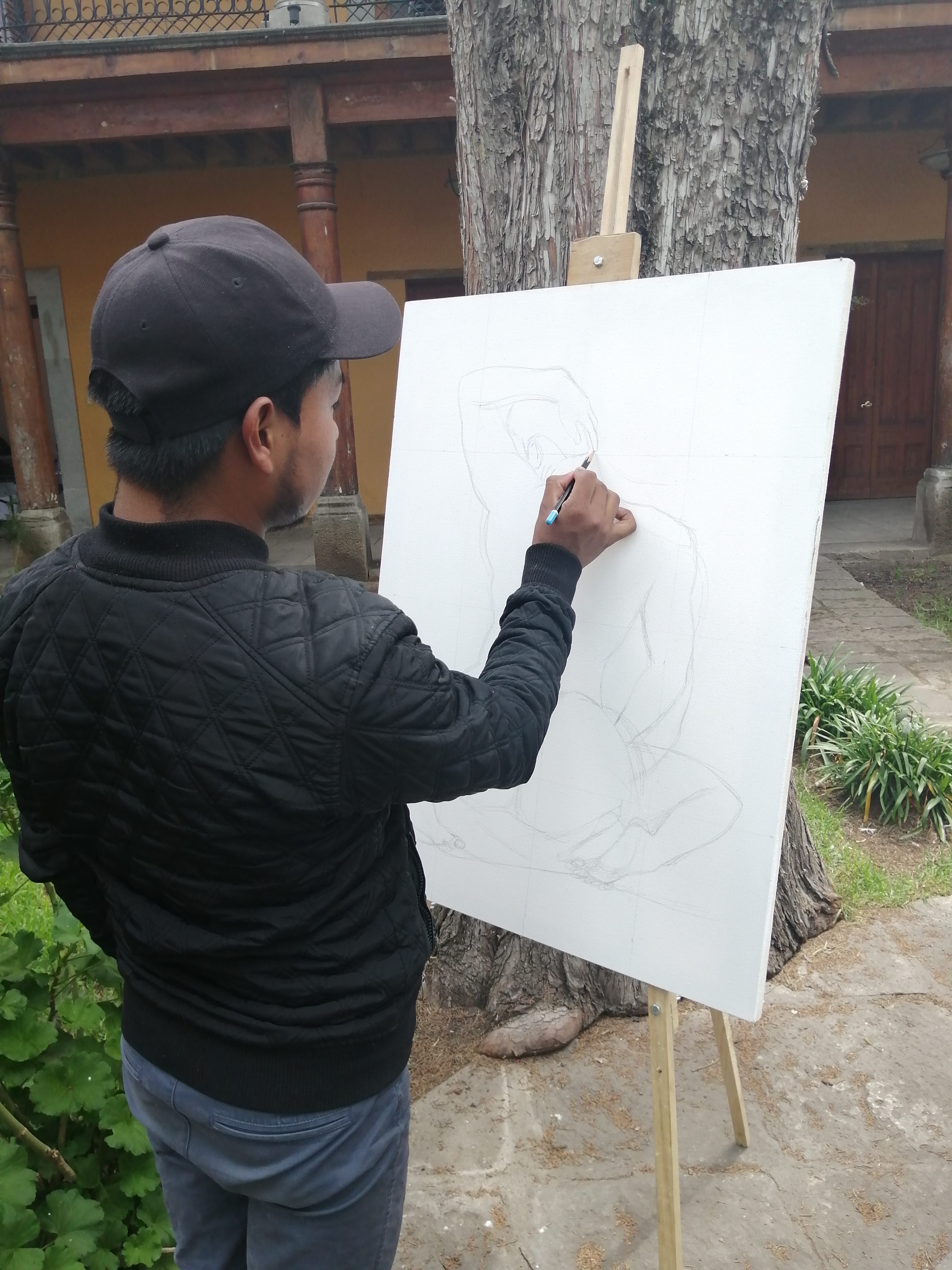 Los participantes vienen de diferentes puntos del país, a quienes procedimos a entrevistar y preguntar la técnica a utilizar y el lugar de donde venían para participar, tal es el caso de Ovidio Castro procedente de Sololá, que está trabajando en el género desnudo artístico y para ello se ha instalado en el interior de Casa Noj.