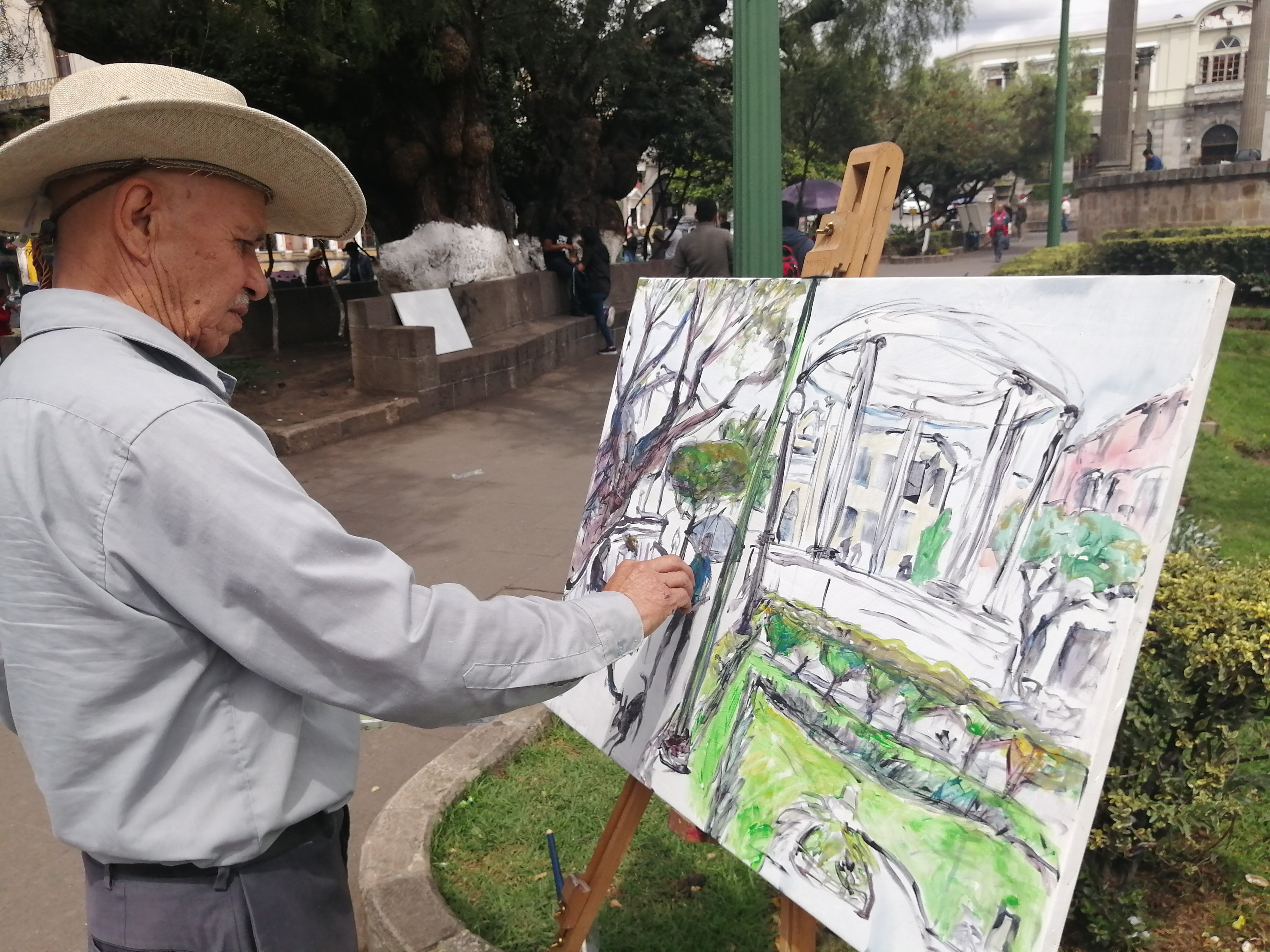 Por. J.C. |Arte | Esta mañana en el contorno al parque a Centroamérica y en algunos puntos como lo son el Centro cultural Casa Noj el frontispicio de Casa de la cultura, se han ubicado un promedio de 35 artistas de la plástica, para participar del evento Arte en las calles. Cada uno de ellos se estableció de la mejor manera para proceder y plasmar en el Lienzo preparado previamente, los trazos y formas que durante el día de hoy viernes, mañana sábado y domingo darán vida a la obra de arte que estarán presentando para participar del certámen Arturo Martínez.