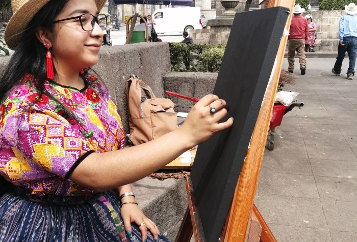 Con la técnica de la acuarela participa también Francisco Texmal, quien viene de Antigua Guatemala.